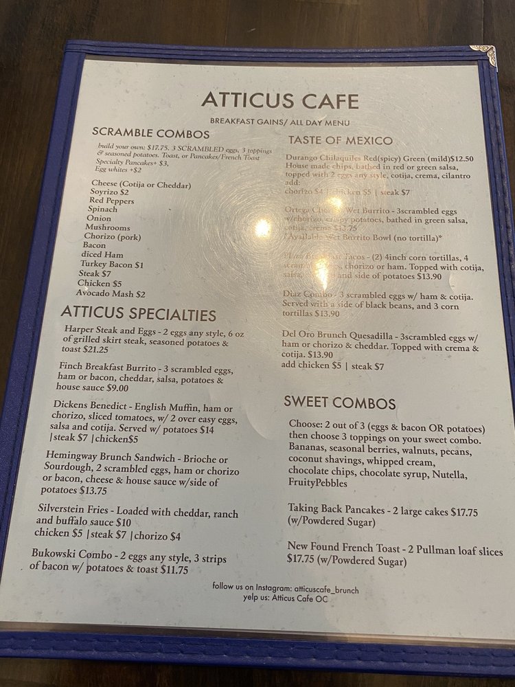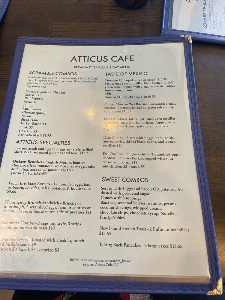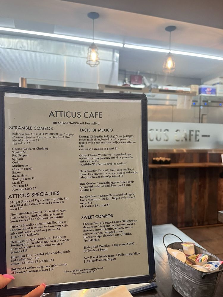 Introducing the menu at Atticus Cafe, a Latinx-owned and LGBTQ-owned establishment in Anaheim, CA, offering a diverse range of options including burgers, cafes, breakfast, and brunch. With a focus on sustainability, they provide vegan options, compostable containers, and plastic-free packaging. The cozy atmosphere and attentive service make for a pleasant dining experience. Customers rave about the delicious chilaquiles, with options for chicken or vegetarian. The affordable prices and friendly staff create a welcoming environment, perfect for a casual meal or special occasion. Atticus Cafe also caters to various dietary needs, including vegan and gluten-free choices. Don't miss out on trying their signature dishes and unique flavors that set them apart from other eateries.
