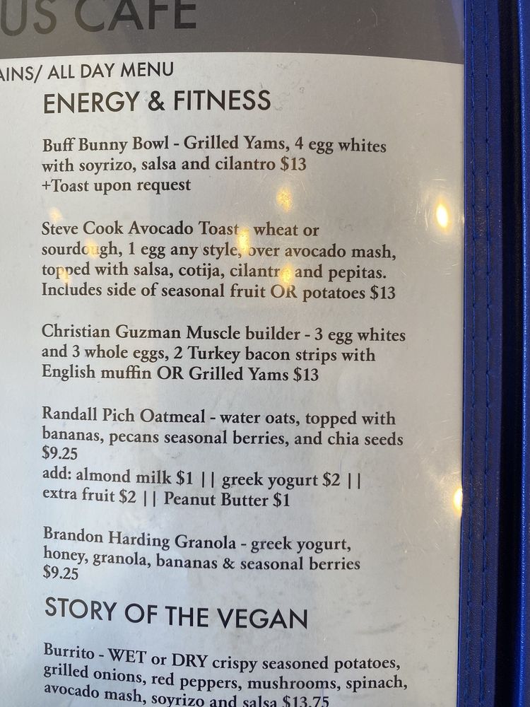 Grilled soyrizo, red peppers, jalapeno, onions, spinach, mushrooms with diced yams no eggs. Served with salsa and avocado mash